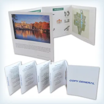 O Ulotki harmonijkowe (znane również jako składane w "Z" lub "accordion fold") to forma ulotki, która składa się z kilku paneli zgiętych naprzemiennie w stylu harmonijki. Taka konstrukcja pozwala na przekazanie dużej ilości treści w kompaktowej i uporządkowanej formie, przy jednoczesnym zachowaniu czytelności i atrakcyjnego układu graficznego. Ulotki harmonijkowe doskonale sprawdzają się jako materiały informacyjne, promocyjne czy instruktażowe. Są chętnie wykorzystywane przez branże takie jak turystyka (np. przewodniki, mapki), gastronomia (menu, oferty sezonowe), medycyna (ulotki informacyjne o lekach czy usługach), kultura (programy wydarzeń) czy edukacja. Dzięki swojej formie pozwalają na logiczne rozdzielenie treści na poszczególne sekcje i wygodne zapoznanie się z informacjami krok po kroku.